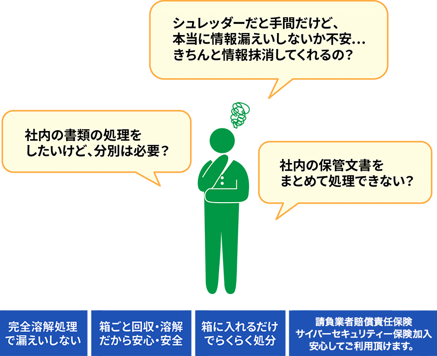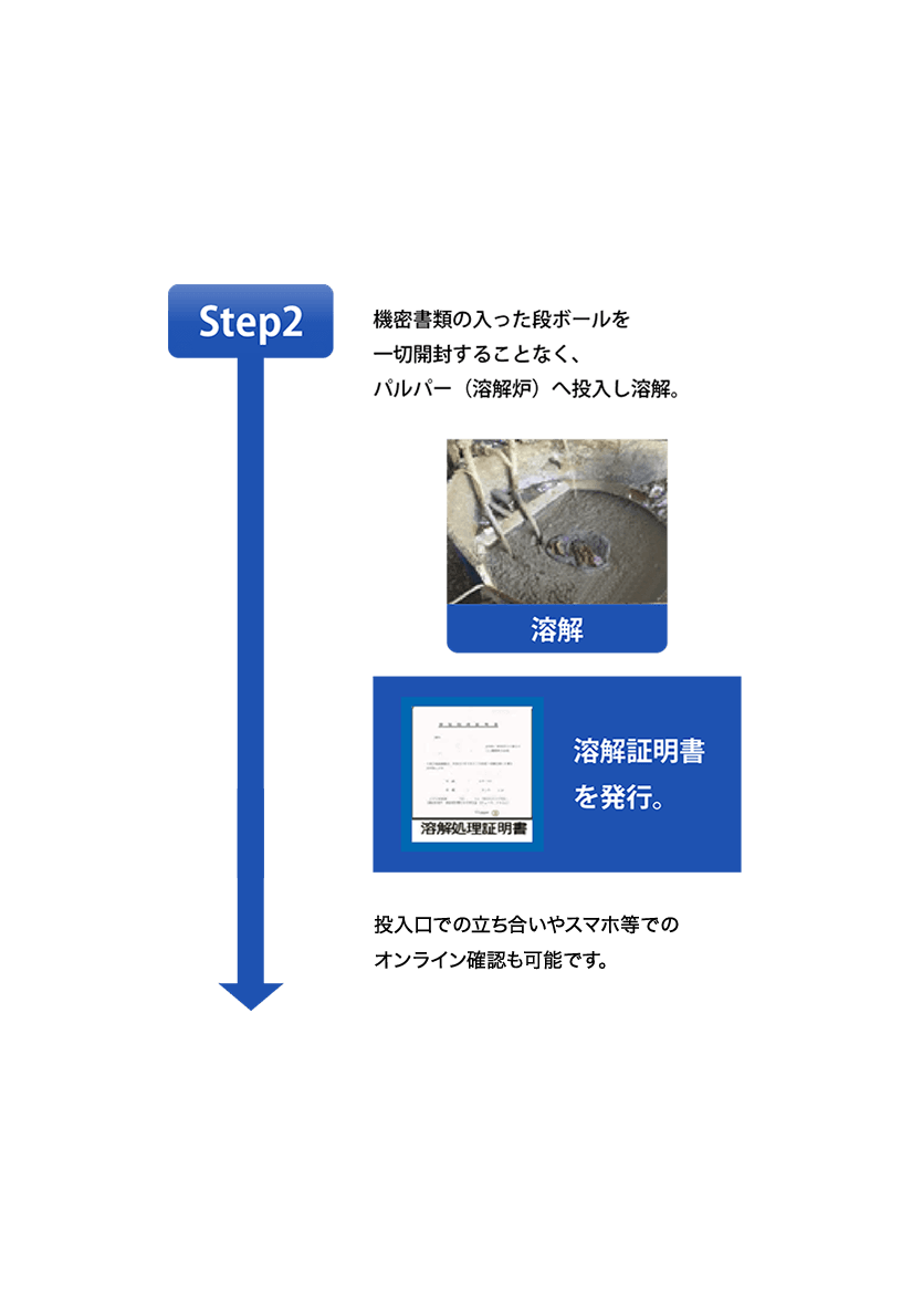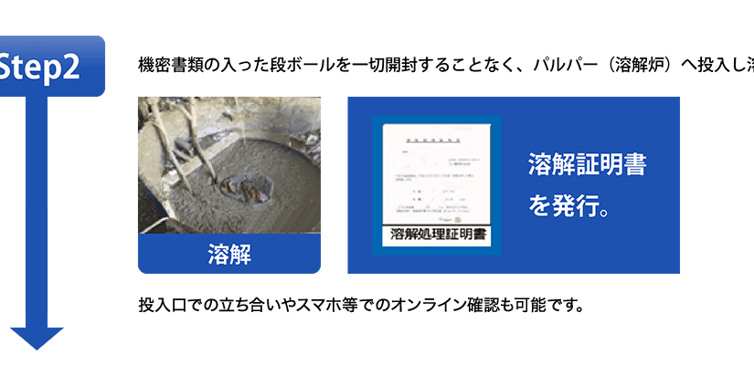 また保管箱は外部から見えないように、また溶解の支障とならないように段ボールの箱をご使用ください。